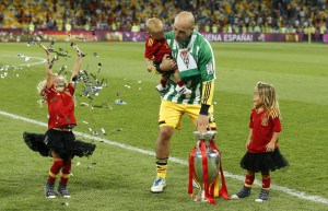 Por eso me gustó que los jugadores sacaran al campo a sus niñitas: Nora, la de Torres, con sus dos coletas; las de Pepe Reina, jugando con los papelillos de la gloria; la de Arbeloa, en brazos; la sobrina de Ramos… A eso sabe el 4-0 de Kiev: a delicioso pasatiempo para críos. Por eso cada vez que España alza una copa me acuerdo de los que no vivieron para verlo: historia, al fin y al cabo. El porvenir, a qué dudarlo, son esas niñitas correteando sobre el césped ajenas del todo al fútbol agonístico en que me crié.