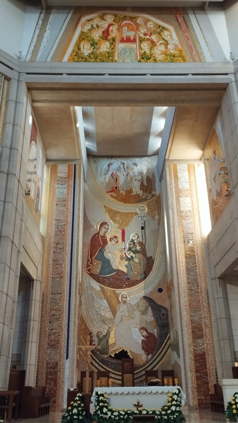 Aquello nos había sobrecogido. Impresiona ver las salpicaduras de sangre en el tejido blanco. Había sido lo más impactante de la visita a la capilla mayor del santuario, inserto en un octógono (con el valor mistagógico de este número en los baptisterios, por ejemplo), donde todas las paredes estaban recubiertas con mosaicos del exjesuita Marko Rupnik. En cierta forma, nos predispuso el ánimo para lo que tenía que venir: no los mosaicos, sino la sotana ensangrentada.